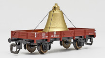 | nízkostěnný nákladní vůz červenohnědý s nákladem zvonu |