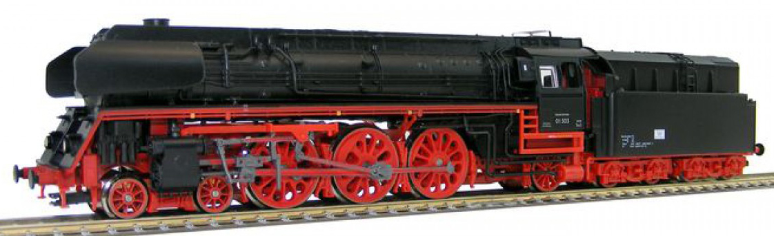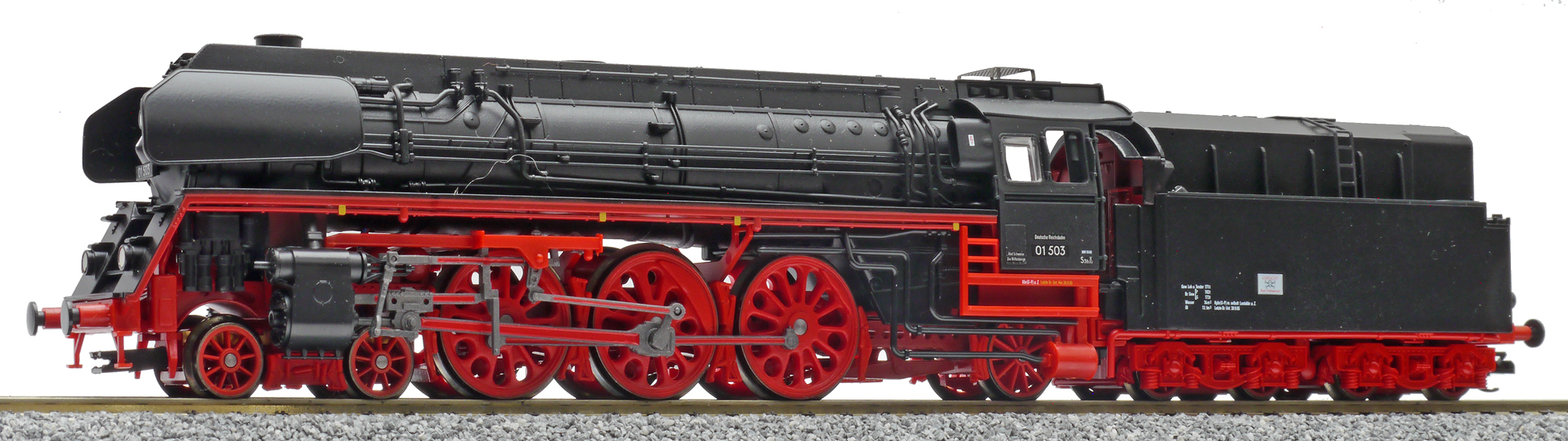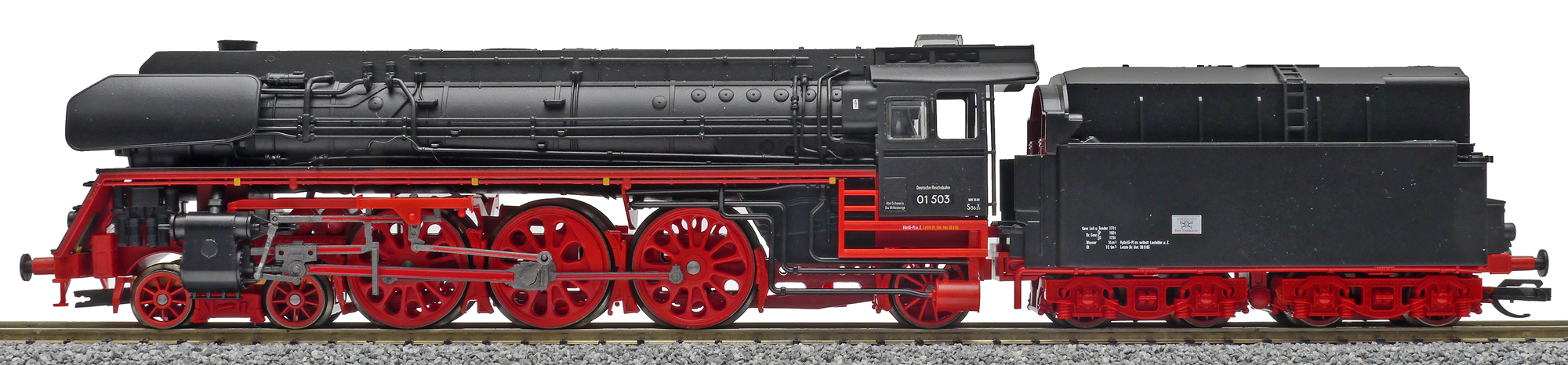 Kód   1018203  [Lokomotivy] → [Parní] → [BR 01] → 1018203: černá s červeným pojezdem, kouřovými plechy a olejovým tendrem BR 01.5