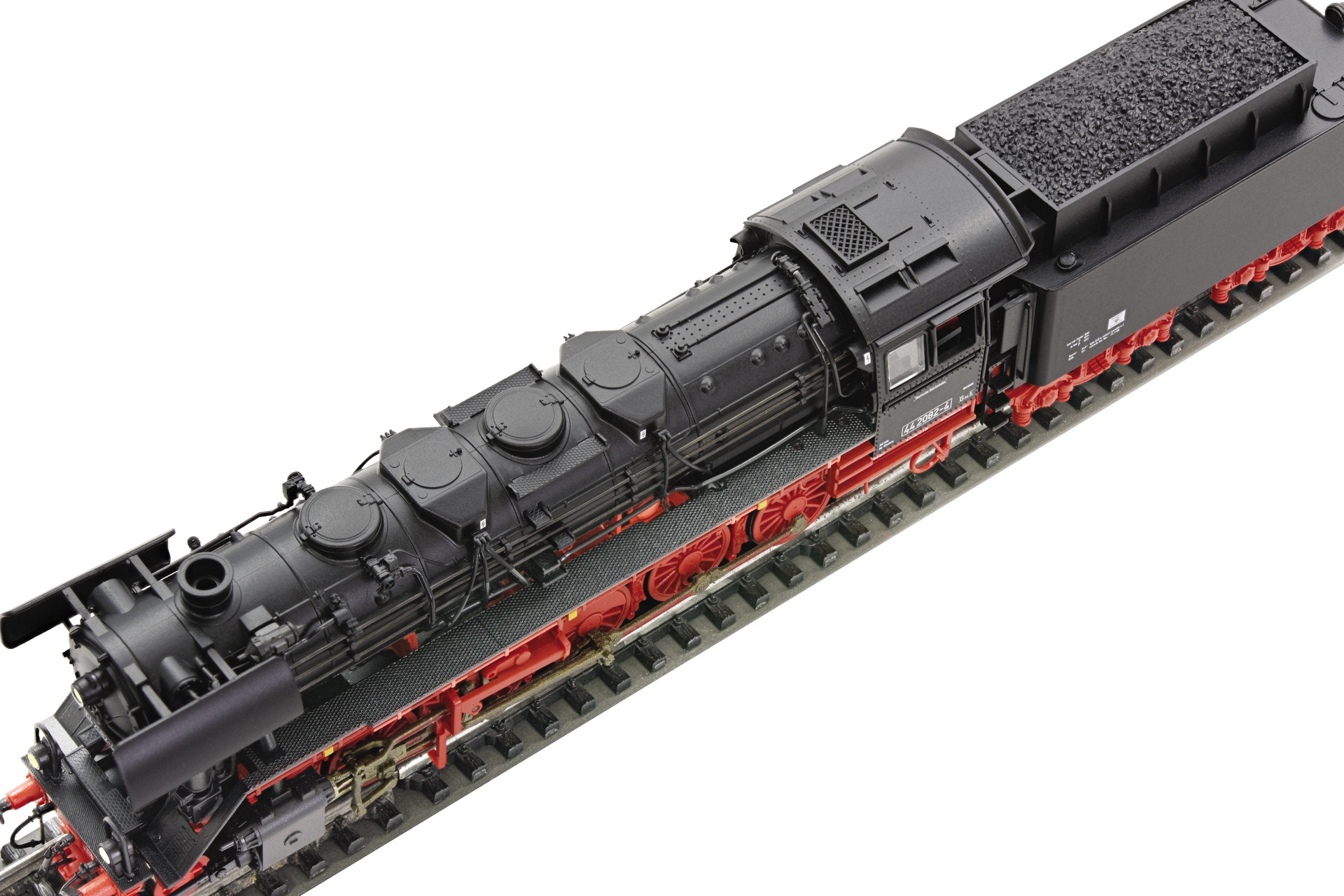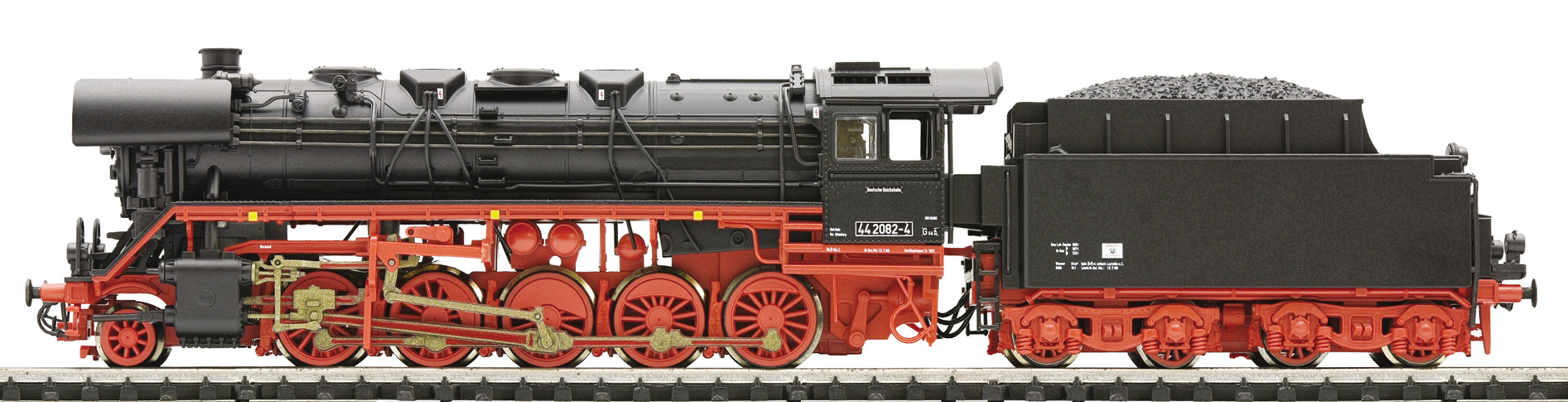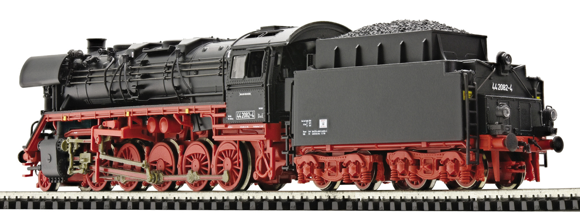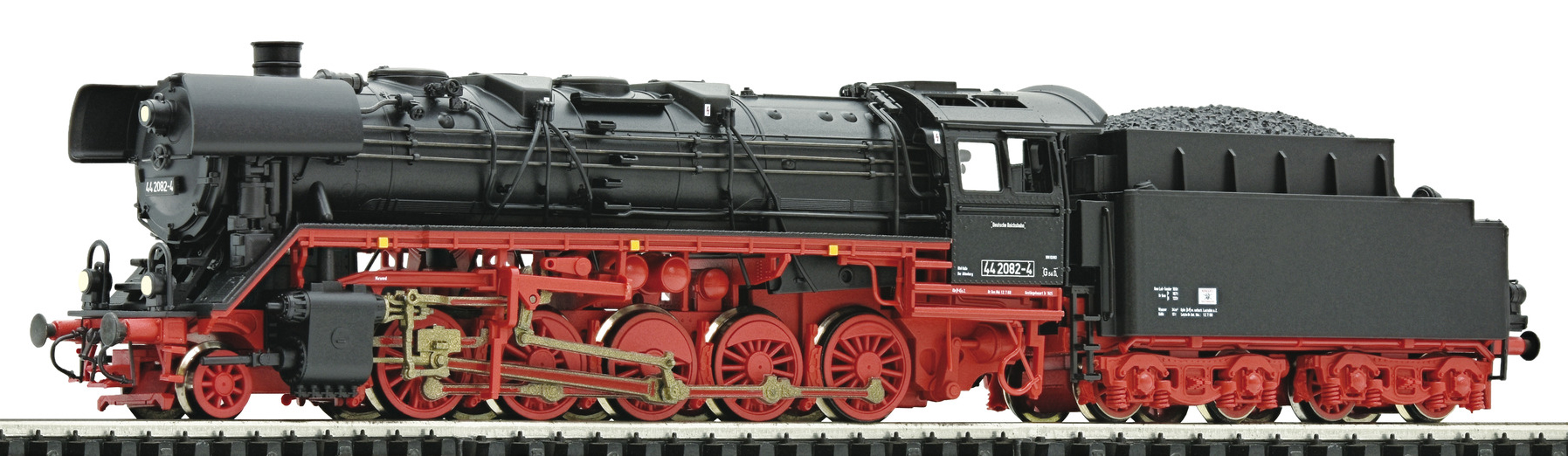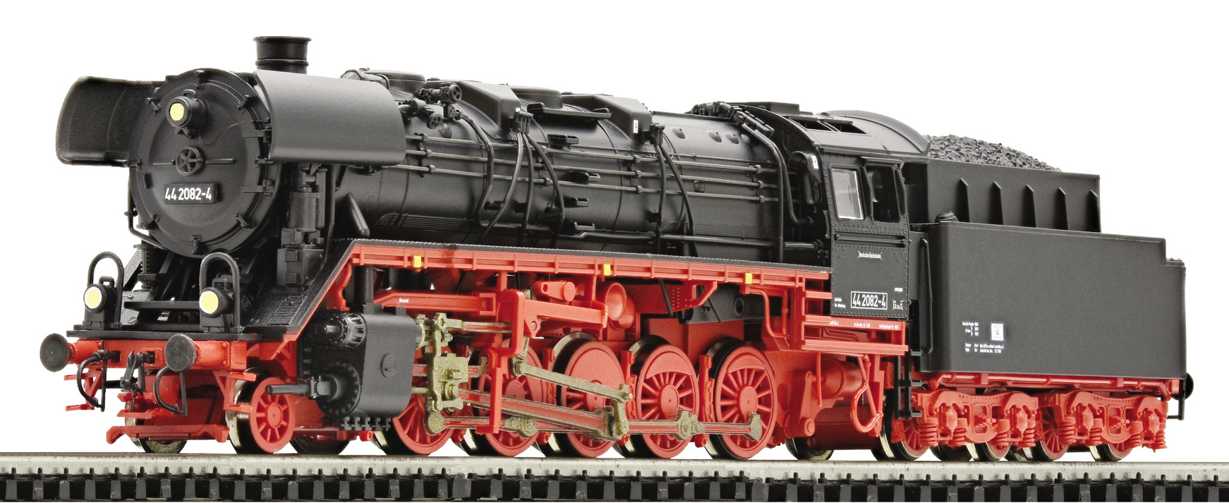 Kód   36082  [Lokomotivy] → [Parní] → [BR 44] → 36082: parní lokomotiva černá s červeným pojezdem a kouřovými plechy