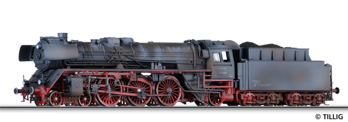 Kód   02140  [Lokomotivy] → [Parní] → [BR 03] → 02140: parní lokomotiva černá s kouřovými plechy a s červeným pojezdem