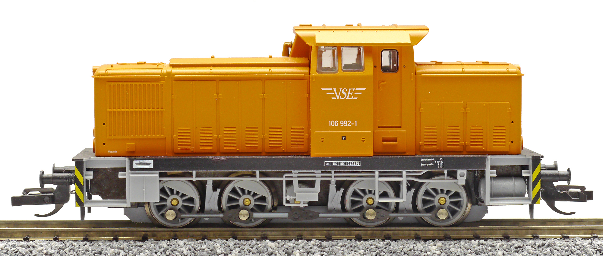 Kód   502603  [Lokomotivy] → [Motorové] → [V 60] → 502603: dieselová vlečková lokomotiva oranžová „VEB Teerverarbeitungswerk Rositz“