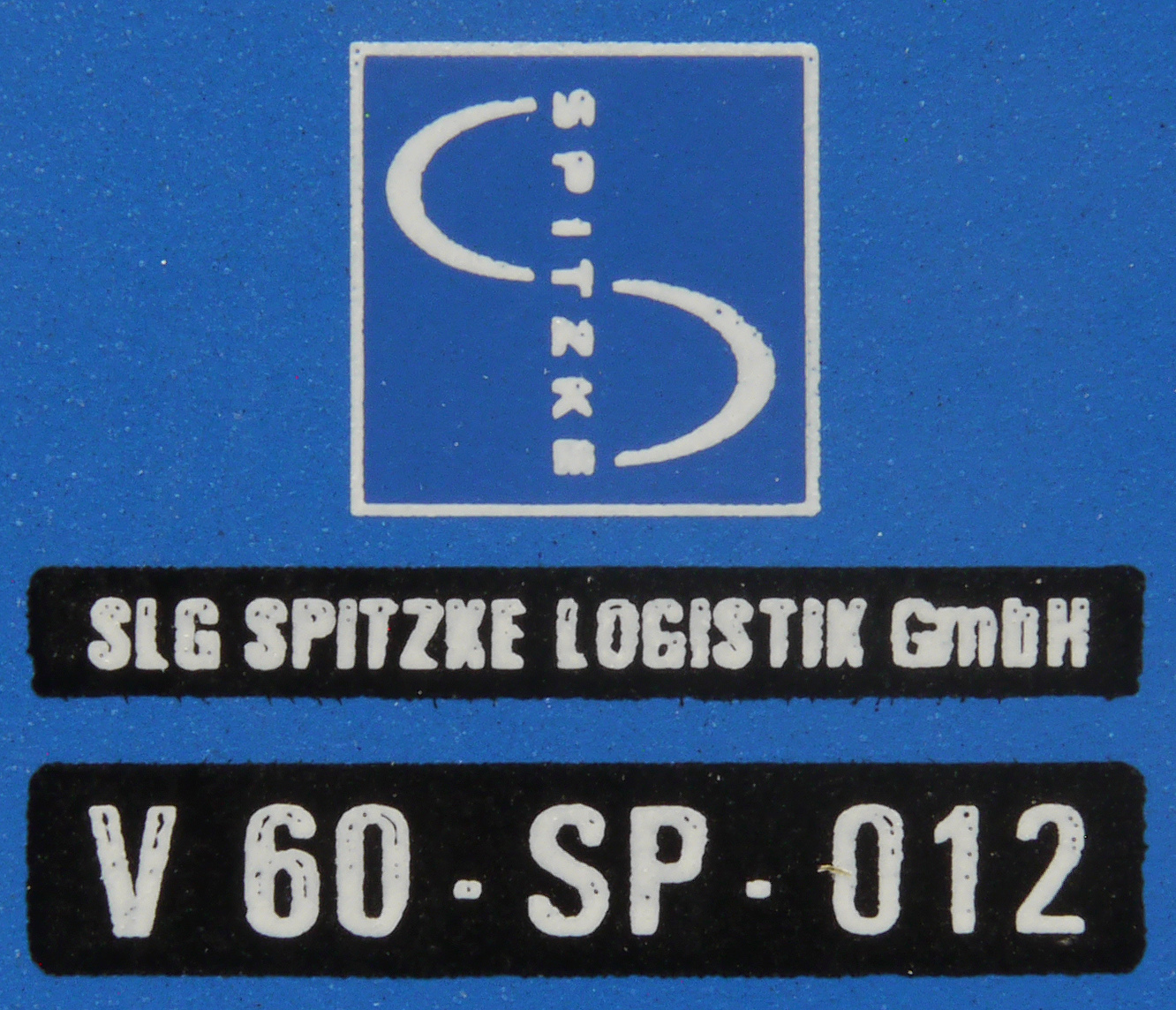 Popis   modrá s bílým pruhem a černým pojezdem "Spitzke Logistik GmbH" (SLG)