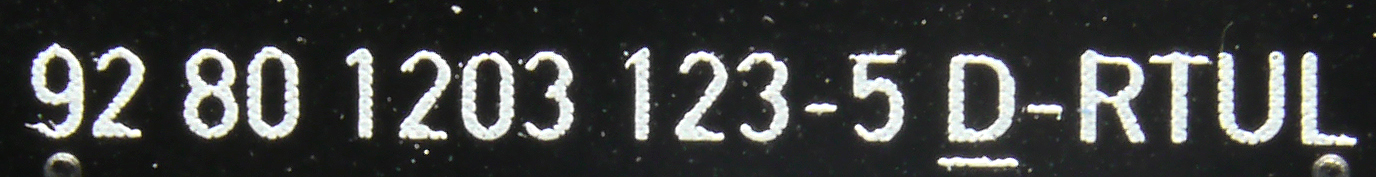 Číslo   92 80 1203 123-5  Kontrolní číslice je v pořádku  Tovární číslo