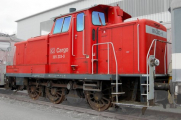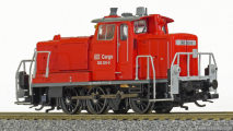 | dieselová lokomotiva červená „DB Cargo“ |