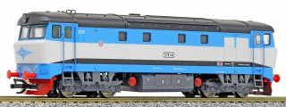 Kód   CD-749-259  [Lokomotivy] → [Motorové] → [T478.1 „Bardotka”] → CD-749-259: dieselová lokomotiva v barevné kombinaci modrá-bílá, černý pojezd
