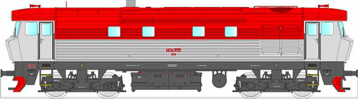| dieselová lokomotiva červená-světle šedá |