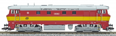 Kód   CD-749-100  [Lokomotivy] → [Motorové] → [T478.1 „Bardotka”] → CD-749-100: dieselová lokomotiva červená se žlutám výstražným pruhem