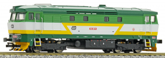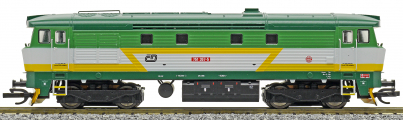 Kód   CD-749-264  [Lokomotivy] → [Motorové] → [T478.1 „Bardotka”] → CD-749-264: dieselová lokomotiva zelená-slonová kost, hnědá střecha, černý rám a pojezd