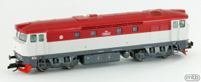 Kód   CD-749-006  [Lokomotivy] → [Motorové] → [T478.1 „Bardotka”] → CD-749-006: dieselová lokomotiva červená-bílá s šedým pojezdem
