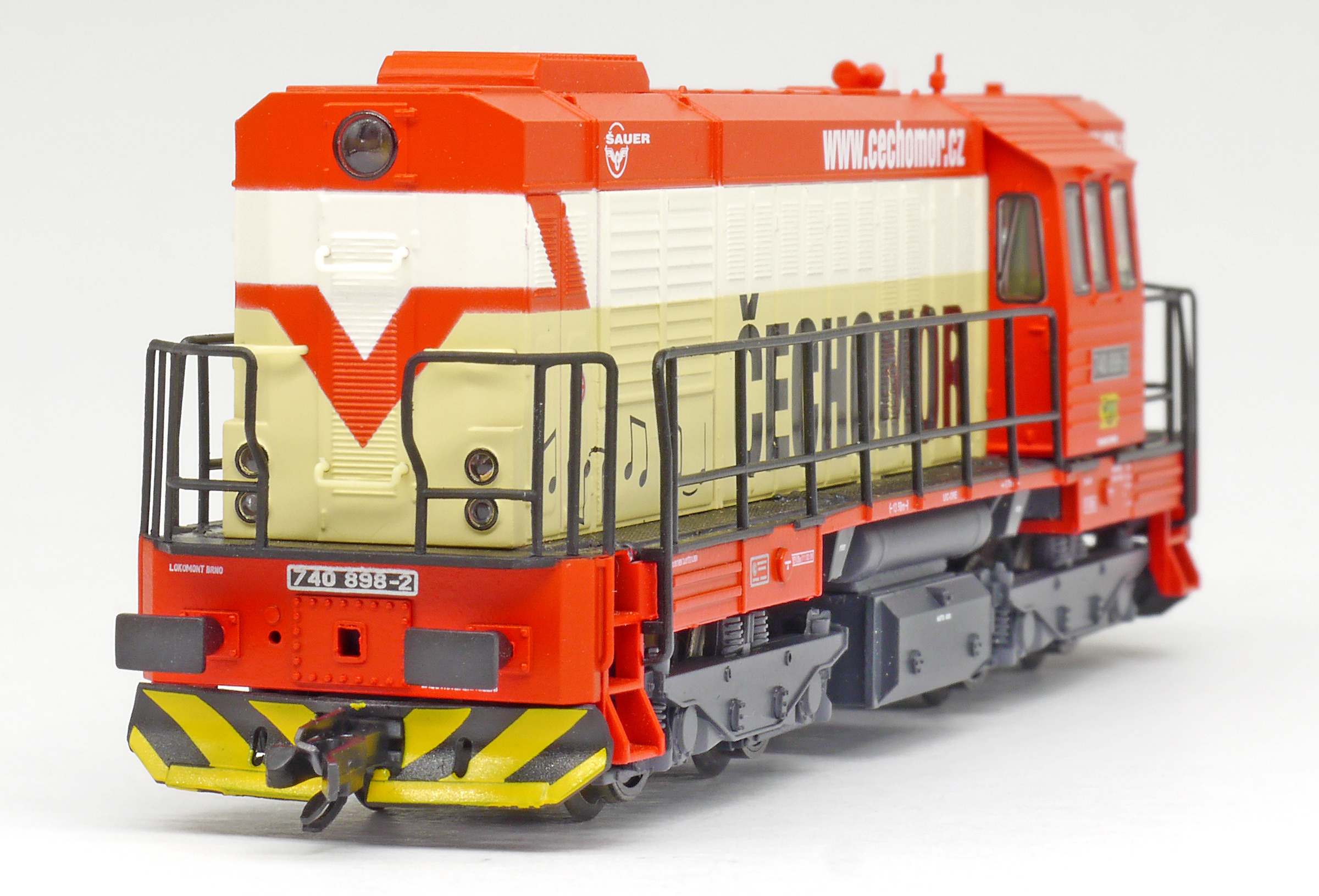 | dieselová lokomotiva s reklamou „ČECHOMOR“ |