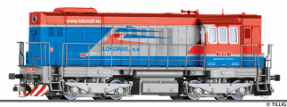 | dieselová lokomotiva v barevném schematu „LOKORAIL, a.s.“ |