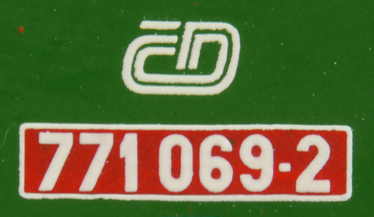 Kód   CD-770-088  [Lokomotivy] → [Motorové] → [T669.0 (770)] → CD-770-088: dieselová lokomotiva červená s výstražným pruhem, šedá střecha, rám a pojezd