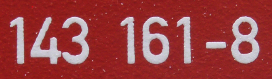Kód   1011302  [Lokomotivy] → [Elektrické] → [BR 143] → 1011302: červená s bílým proužkem, šedé podvozky