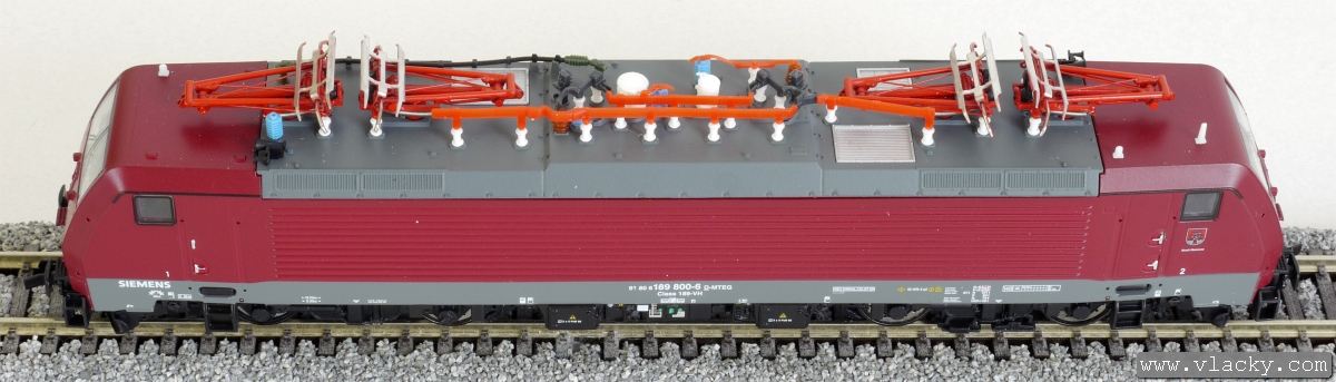 Kód   02470  [Lokomotivy] → [Elektrické] → [BR 189] → 02470: elektrická lokomotiva červená se čtyřmi polopantografy