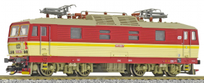 Popis   elektrická lokomotiva červená-slonová kost, šedá střecha a šedé polopantografy