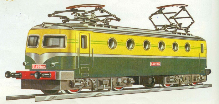 Kód   2313  [Lokomotivy] → [Elektrické] → [E499.0] → 2313: elektrická lokomotiva zelená-hráškově zelená s šedou střechou