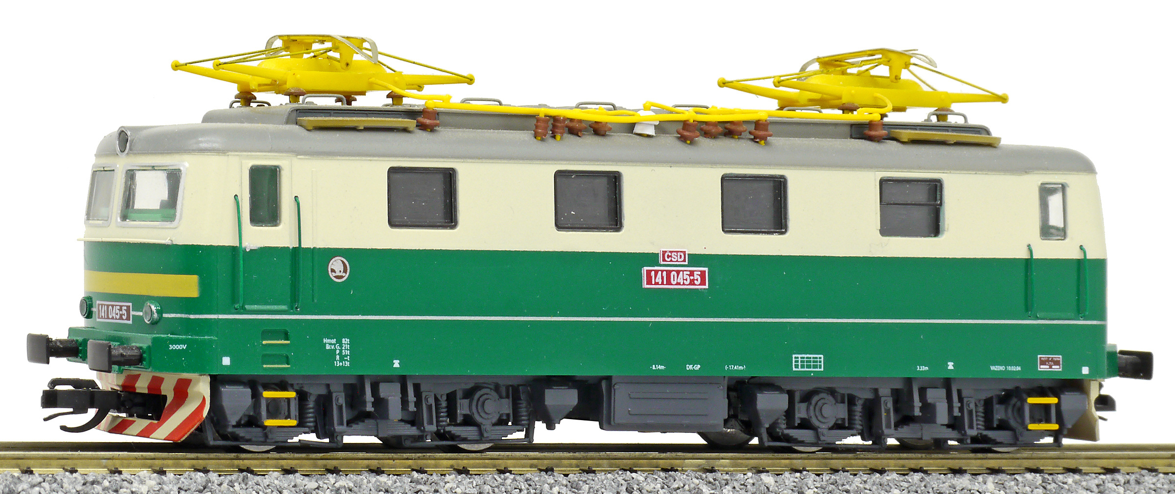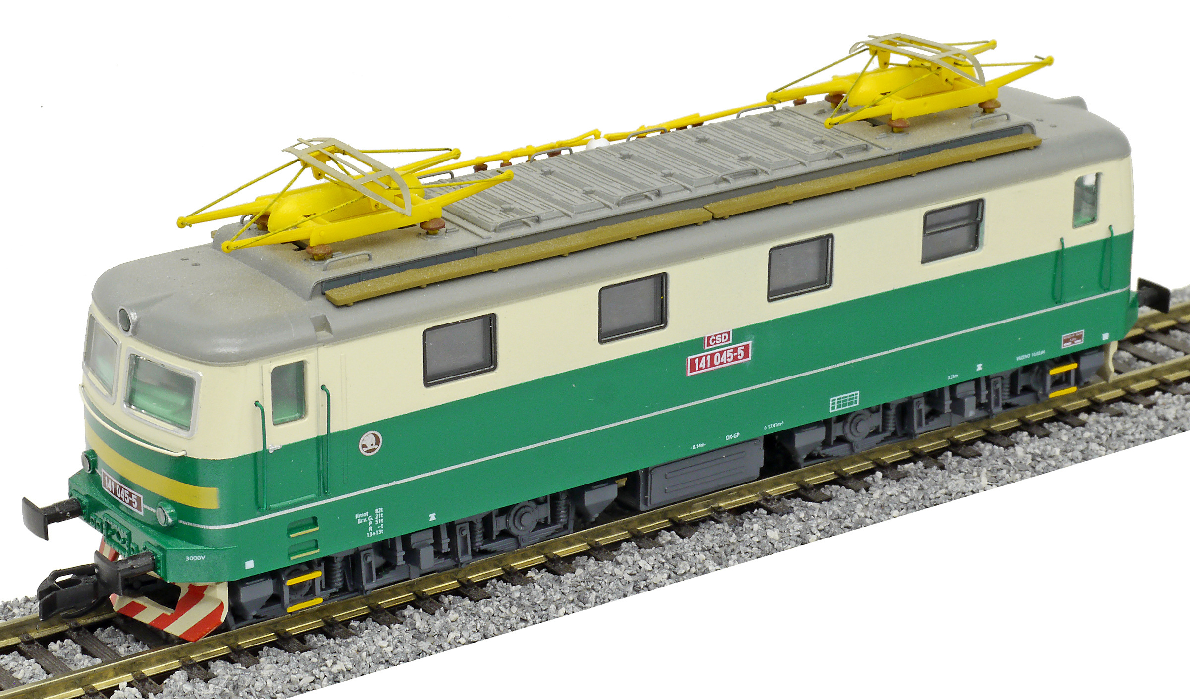 Kód   CD-141-006  [Lokomotivy] → [Elektrické] → [E499.1/E469.1] → CD-141-006: elektrická lokomotiva v odstínech zelené, šedá střecha, žlutý výstražný pruh