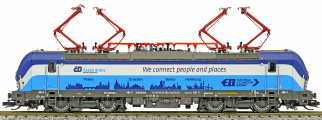 | elektrická lokomotiva s reklamním potiskem „České dráhy“ |