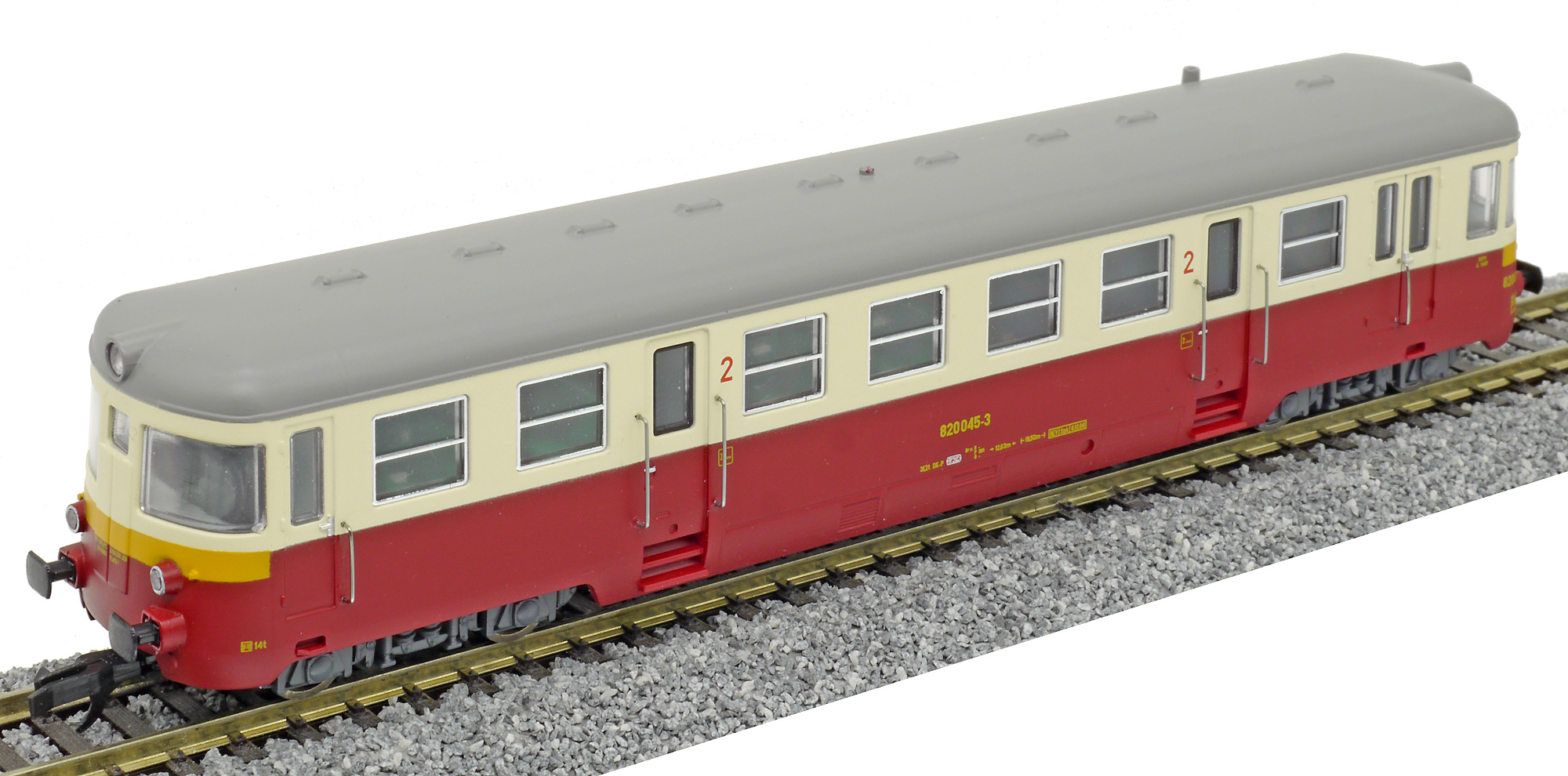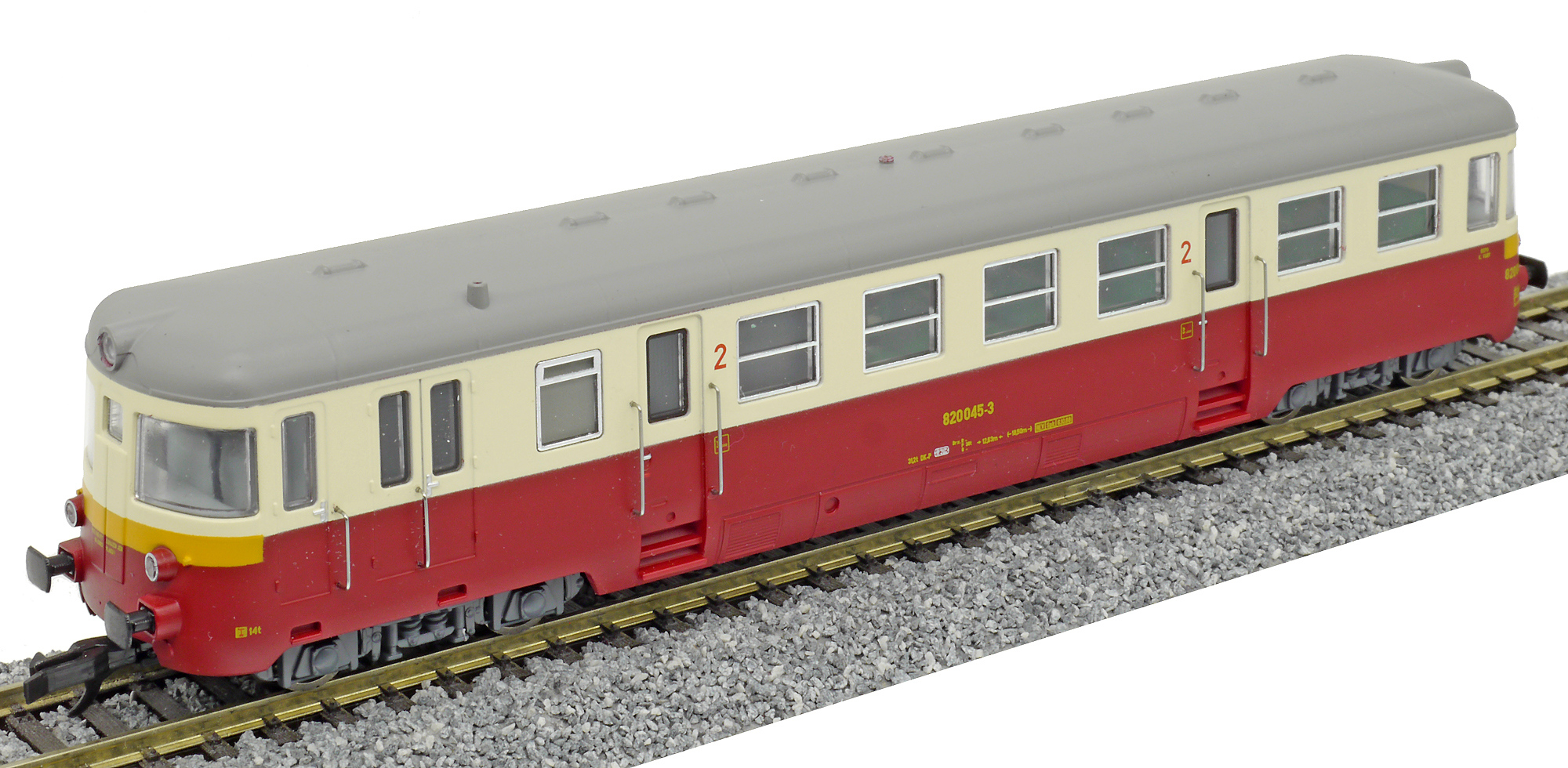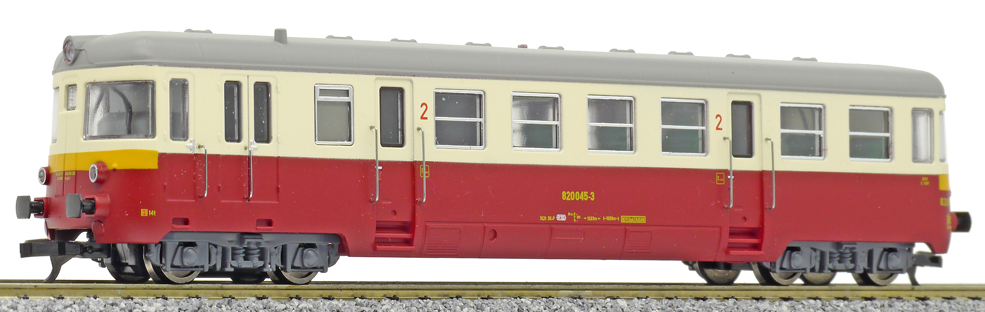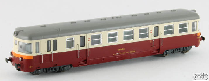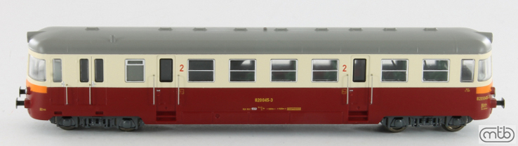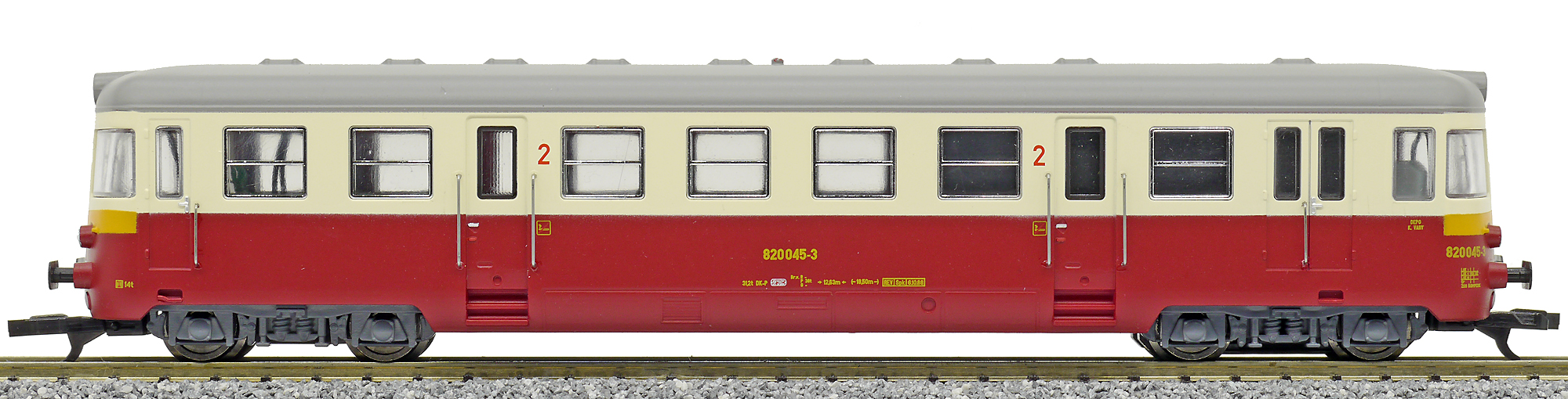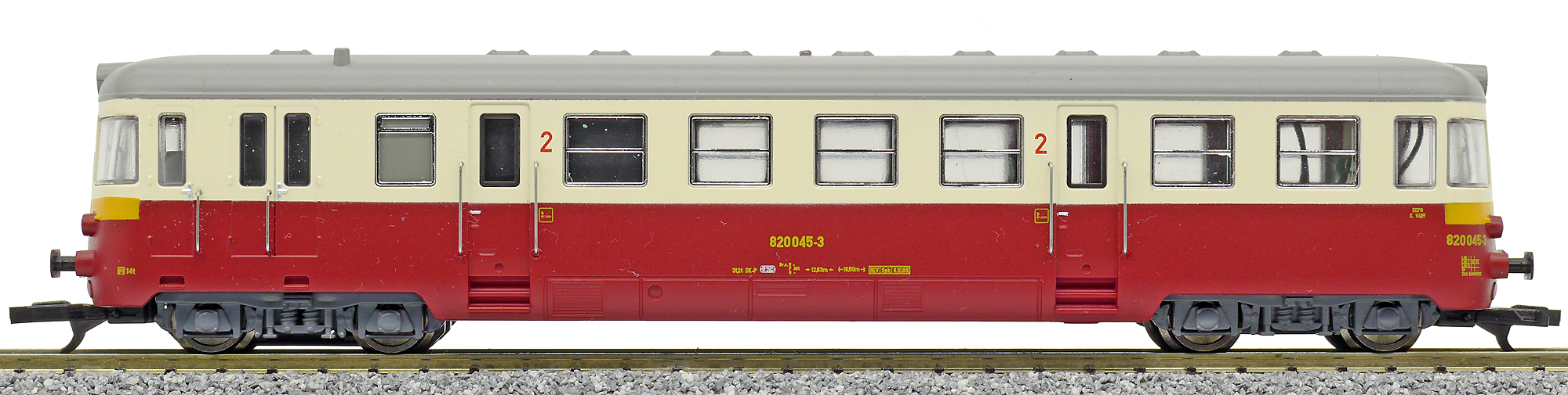 Kód   CSD-820-009  [Lokomotivy] → [Motorové vozy a jednotky] → [M240.0 (820)] → CSD-820-009: motorový vůz červený s výstražným pruhem a s šedou střechou