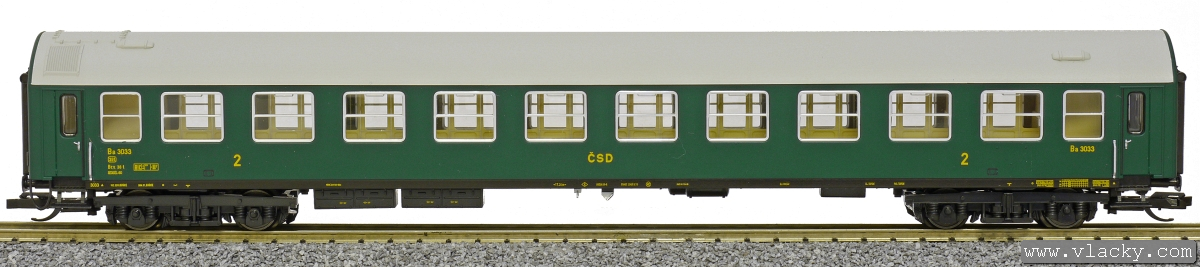 Kód   545/80  [Osobní vozy] → [Rychlíkové] → [typ Y] → 545/80: rychlíkový vůz zelený s šedou střechou 1./2. tř.