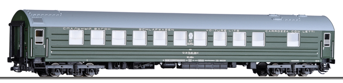| lůžkový vůz zelený s šedou střechou |
