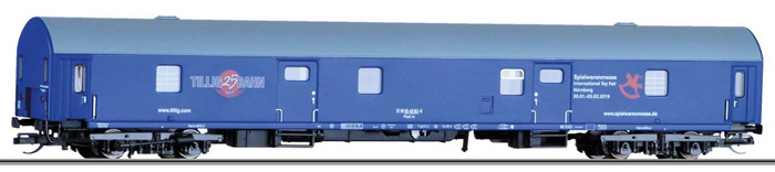 | poštovní vůz modrý s šedou střechou a s potiskem „Spielwarenmesse Nürnberg 2019“ |