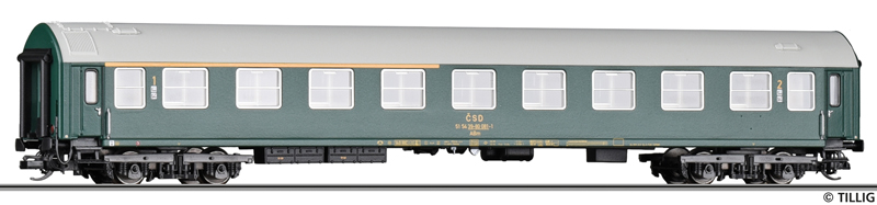 Kód   501263  [Osobní vozy] → [Rychlíkové] → [typ Y] → 501263: rychlíkový vůz v barvách  „TLK” s šedou střechou 2. tř.
