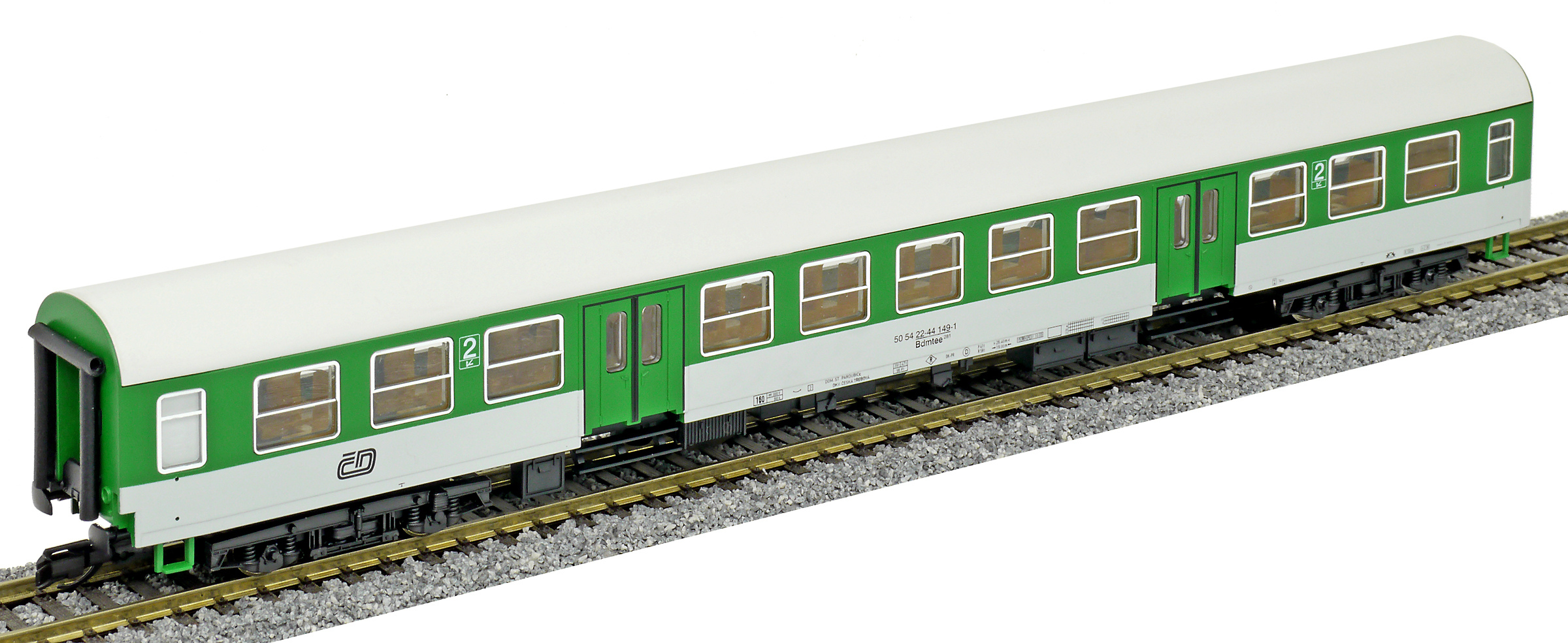 | rychlíkový vůz zelený-bílý se světle šedou střechou 2. tř. |