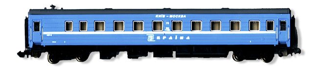 modrý s šedým pruhem a střechou "Ukrajina" (Kyjev-Moskva)