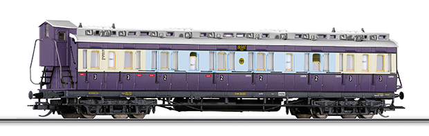 | oddílový osobní vůz fialový-slonová kost se světle šedou střechou 2./3. tř. |