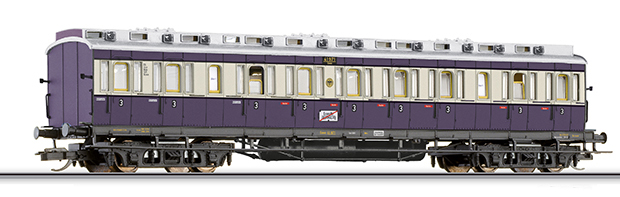 | oddílový osobní vůz fialový-slonová kost se světle šedou střechou 3. tř. |