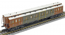 | oddílový osobní vůz tmavě zelený-červenohnědý 1./2./3. tř. |