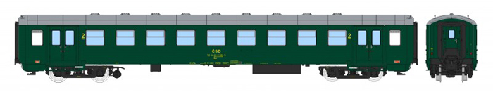 | osobní vůz zelený s šedou střechou 2. tř., Brno 3 |