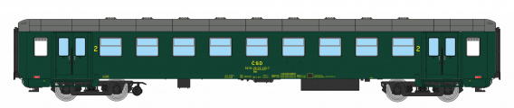 | osobní vůz zelený s šedou střechou 2. tř., Plzeň |
