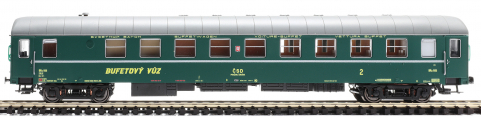 bufetový vůz zelený s šedou střechou 2. tř. se státním znakem, Praha