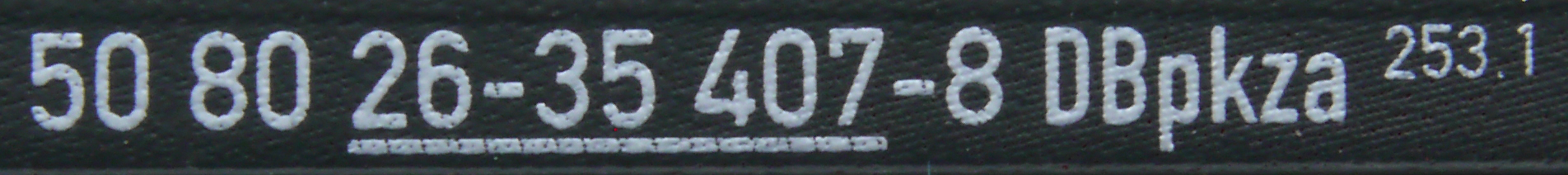 Číslo   50 80 26-35 407-8  Kontrolní číslice je v pořádku  Toto číslo vozu je použito na jiném modelu  Tovární číslo