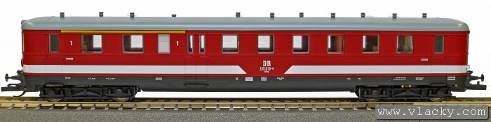 Kód   13300  [Osobní vozy] → [Ostatní] → 13300: červený s šedou střechou a černým pojezdem 1./2. tř.