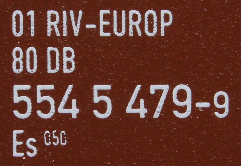 | • 01 80 554 5 479-9 | → | nákladní, nezávislé nápravy, pevný rozchod, ve vlastnictví železniční správy, RIV, EUROP/IF |