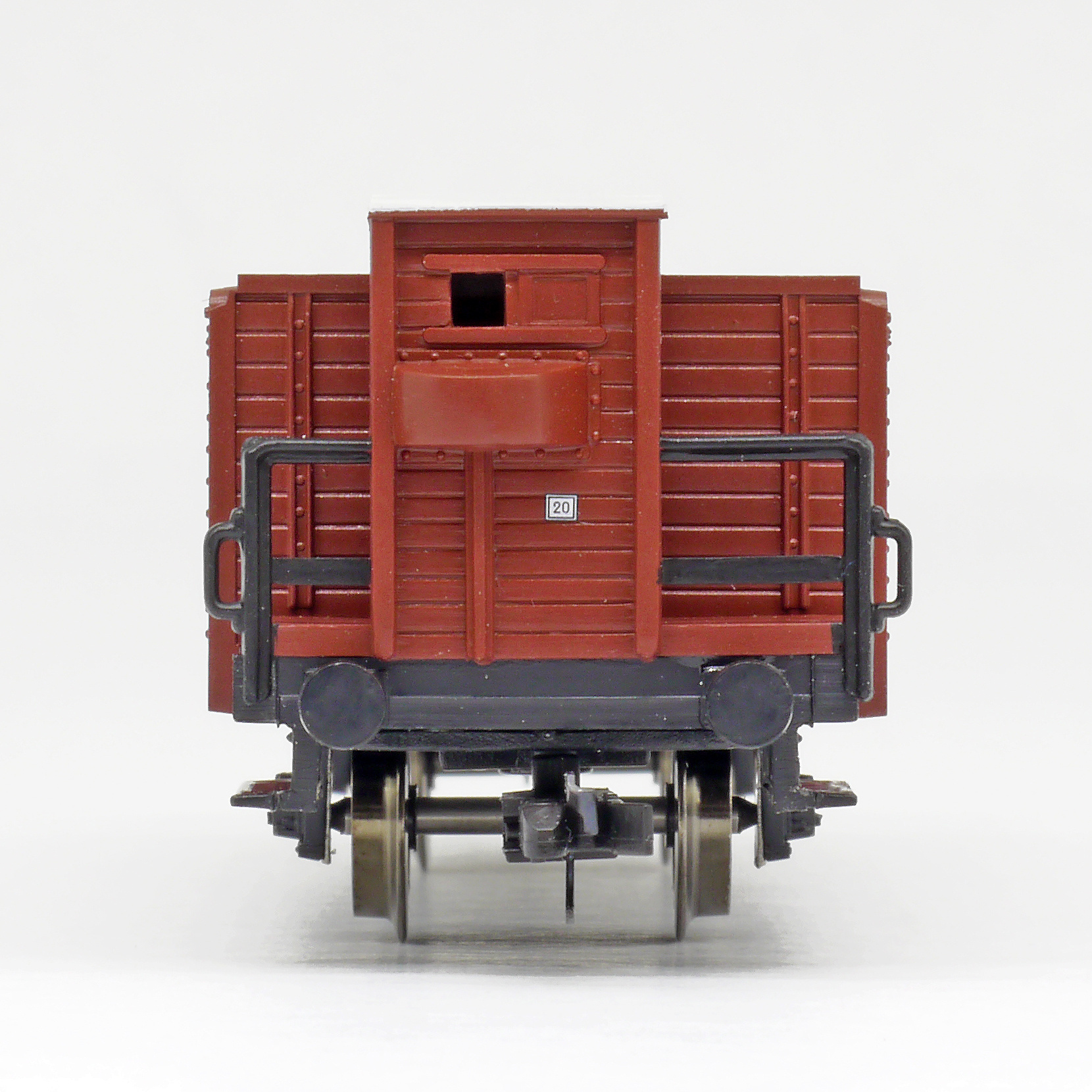 | otevřený nákladní vůz červenohnědý s brzdařskou budkou |