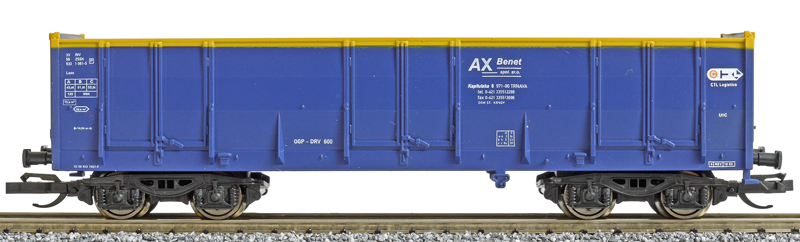 Kód   65380  [Nákladní vozy] → [Otevřené] → [4-osé LOWA] → 65380: modrý se žlutým okrajem „Benet“