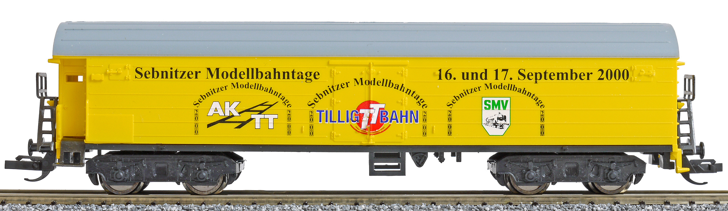 nákladní chladící vůz žlutý s šedou střechou „Sebnitzer Modellbahntage 2000“