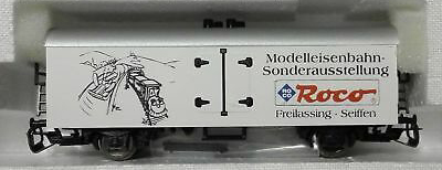 Kód   500542  [Nákladní vozy] → [Kryté] → [2-osé chladicí, pivní a reklamní] → 500542: bílý s šedou střechou ″Modellbahn-Discount Weitnau″