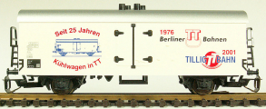 Kód   500940  [Nákladní vozy] → [Kryté] → [2-osé chladicí, pivní a reklamní] → 500940: bílý se stříbrnou střechou, vánoční Tillig 2009