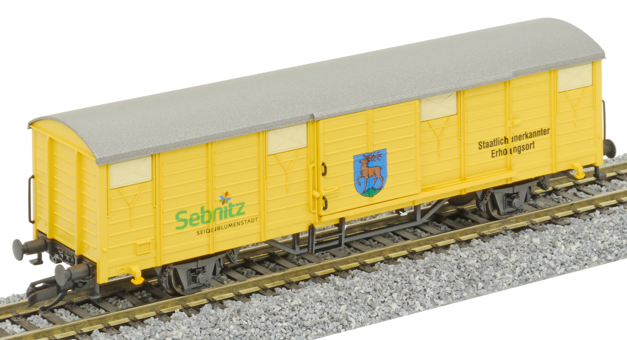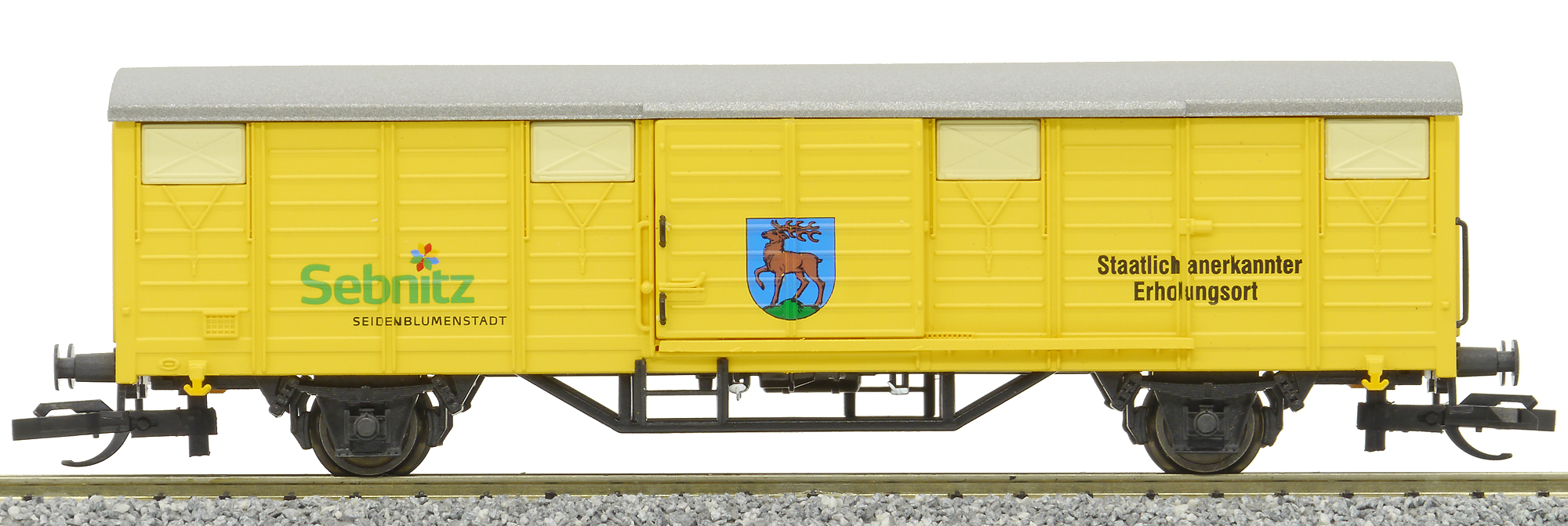 | krytý nákladní vůz oranžový s šedou střechou jako suvenýr „TILLIG/Sebnitz“ |