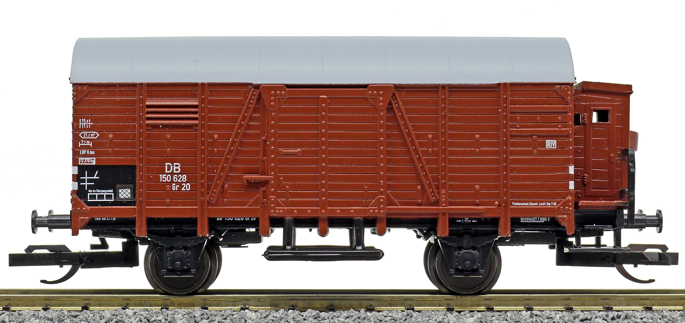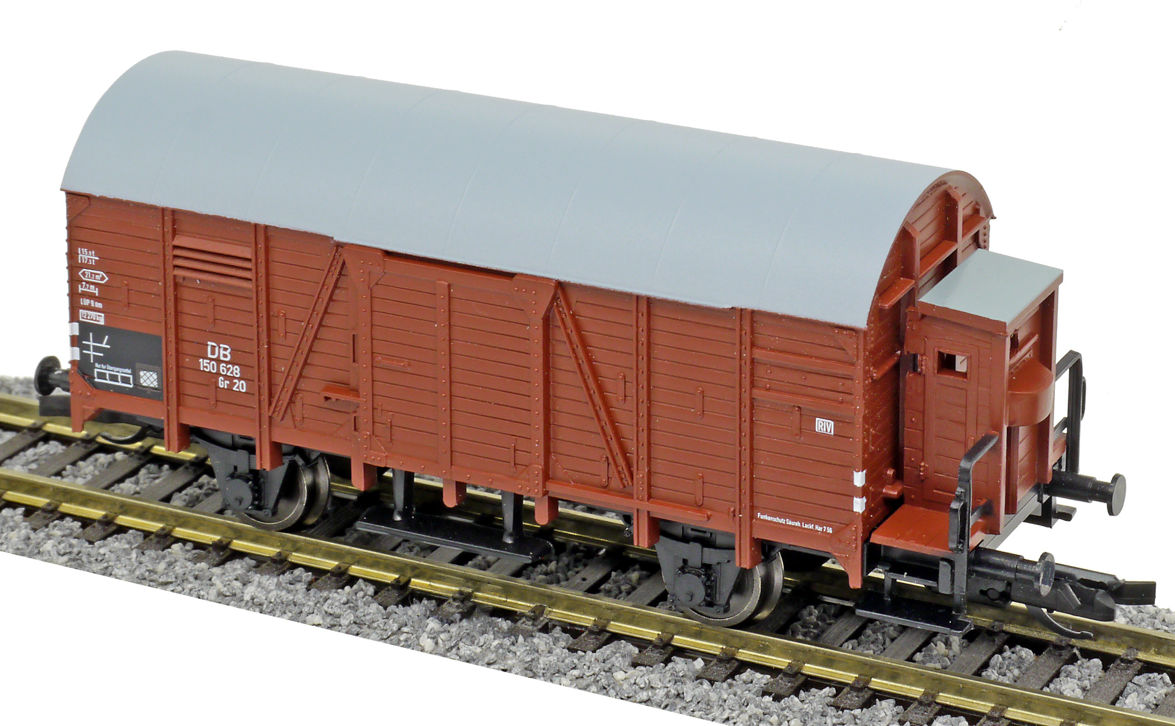 Kód   14127  [Nákladní vozy] → [Kryté] → [2-osé s vyšší střechou] → 14127: šedý s brzdařskou budkou „Weintransportwagen“