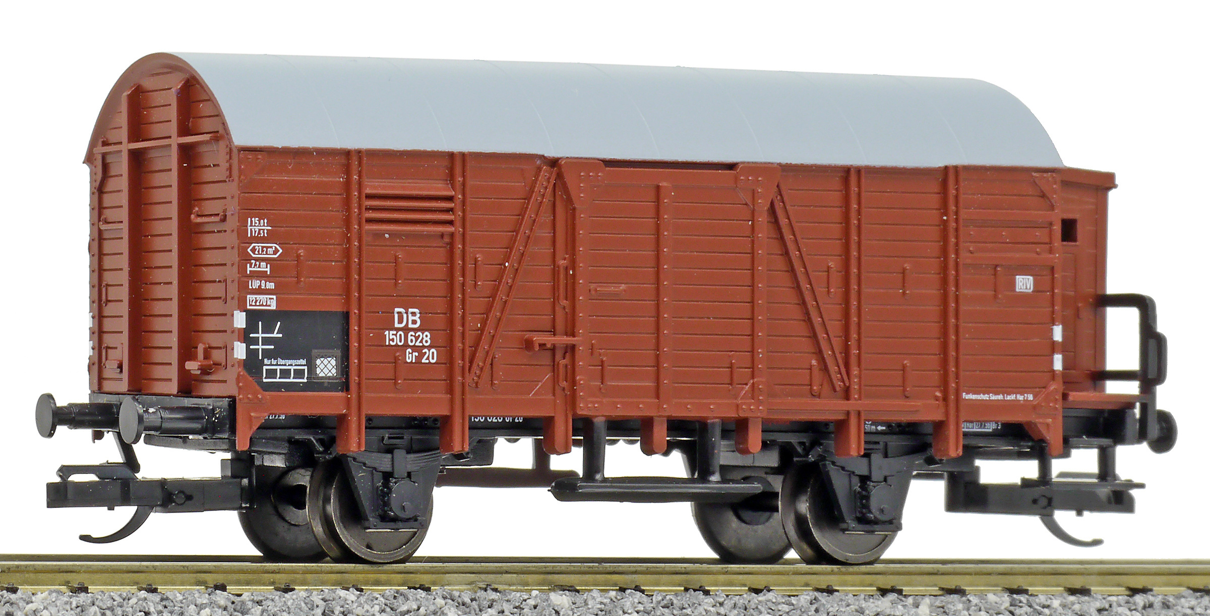 Kód   G 229  [Nákladní vozy] → [Kryté] → [2-osé s vyšší střechou] → G 229: nákladní chladící vůz bílý s šedou střechou „Kühlwagen“ a s brzdařskou budkou