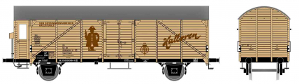 Kód   1000152   ze SETu   [Nákladní vozy] → [Kryté] → [2-osé ostatní] → 1000152: krytý nákladní vůz s brzdařskou budkou „Kulinarisches Sachsen“