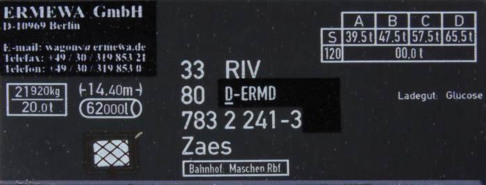 | • 33 80 783 2 241-3 | → | Z - kotlový (cisternový) vůz |