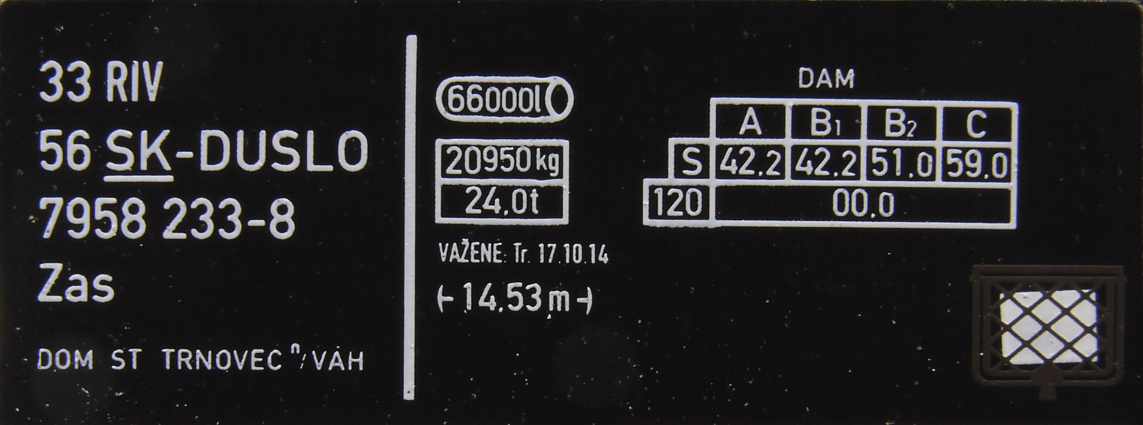 | • 33 56 7958 233-8 | → | Z - kotlový (cisternový) vůz |