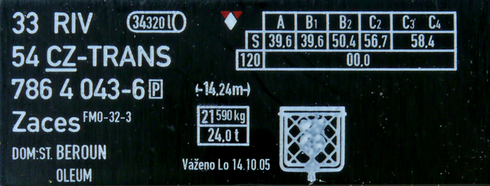 | • 33 54 786 4 043-6 | → | Z - kotlový (cisternový) vůz |